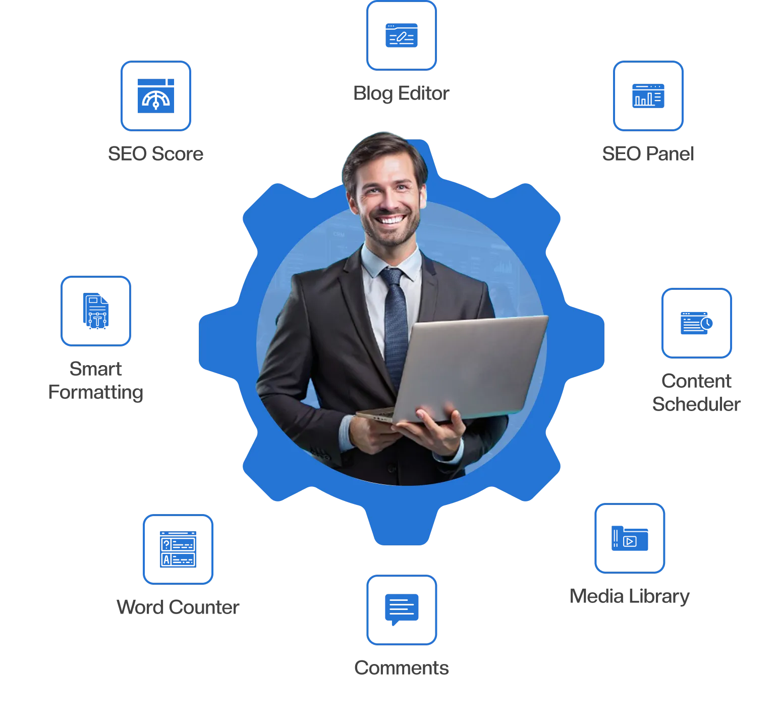 Full-featured blog management system that lets you edit, optimize & publish